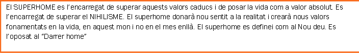 El superhome es l’encarregat de fer un canvi de valors, aixo implica 2 coses: